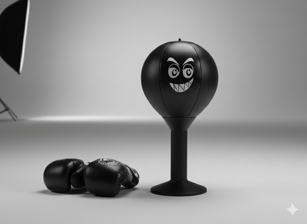 Punchly® – Stress Breaker es un saco antiestrés de escritorio con ventosa diseñado para liberar estrés, tensión y frustración de forma rápida y divertida.